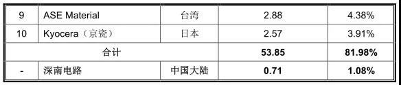 數(shù)據(jù)顯示,目前全球封裝基板行業(yè)基本由UMTC、Ibiden、SEMCO等日本、韓國和臺灣地區(qū)PCB企業(yè)所壟斷,全球前十大封裝基板廠商市場占有率高達81.98%,行業(yè)集中度較高。從這可以看出,深南電路在全球封裝載板行業(yè)所占比例只有1.08%,而另一份數(shù)據(jù)顯示,大陸企業(yè)在全球的占有率是1.23%,從這也可以看出深南電路在本土封裝載板市場的影響力!據(jù)深南電路表示:“公司制造的硅麥克風微機電系統(tǒng)封裝基板產(chǎn)品大量應用于蘋果和三星等智能手機中,全球市場占有率超過30%。”
