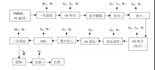 UV貼合(部分):由于部分產(chǎn)品的工藝需求,項目通過UV貼合機在部分半成品的表面涂上一層UV貼合膠水,然后與外購回來的PET板材進行粘合。