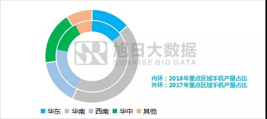 圖表5 2016-2017年全國重點(diǎn)區(qū)域手機(jī)產(chǎn)量占比