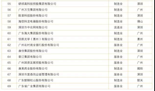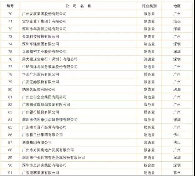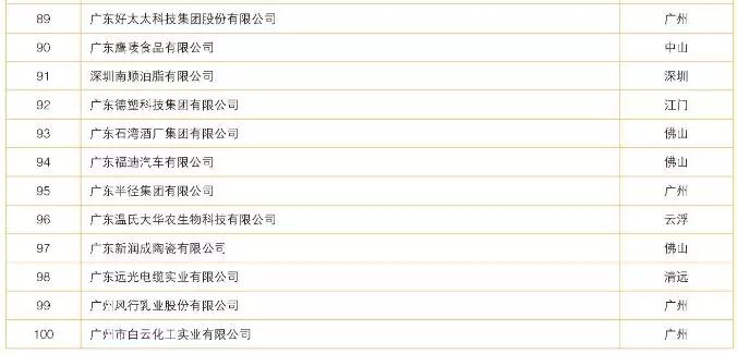 首先來看看2018廣東制造業(yè)前100強企業(yè),名單中華為投資控股有限公司、正威國際集團有限公司、廣州汽車工業(yè)集團有限公司分別位列前三。