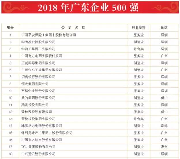 而在2018廣東企業(yè)500強名單中,華為、格力、TCL、天音通信、歐菲科技、伯恩光學(xué)、康佳、立訊精密、德賽集團、欣旺達、領(lǐng)益智造、郎華供應(yīng)鏈、天馬微電子、大族激光、格林美、生益科技、長盈精密、共進電子、英唐智能控股、裕同包裝、偉創(chuàng)力電子設(shè)備、長城開發(fā)、康冠技術(shù)、勁勝智能、杰賽科技、得潤電子、深南電路、普路通、超聲電子、景旺電子、萊寶高科、匯頂科技、同興達、國顯光電、信維通信、風(fēng)華高科、海格通信、依頓電子、興森科技、奮達科技、潮州三環(huán)、崇達技術(shù)、卓翼科技、勝宏科技、華測檢測、碩貝德、新綸科技、順絡(luò)電子、天寶電子、超華科技!