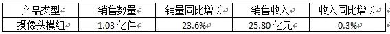攝像頭模組平均銷(xiāo)售單價(jià)為25.1元較同期下跌約18.8%