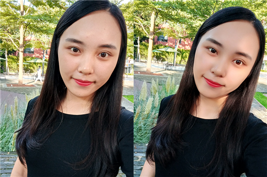 ▲左為正常拍攝,右為開(kāi)啟美顏效果