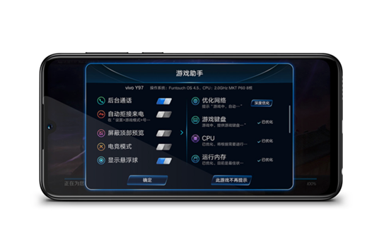 大容量存儲(chǔ),意味著能夠容下更多熱門游戲和應(yīng)用,而vivo Y97所搭載的聯(lián)發(fā)科P60就能夠在性能上提供相應(yīng)的支持。為了強(qiáng)化游戲體驗(yàn),vivo更是加入了游戲模式4.0,新增掛機(jī)模式,游戲會(huì)在息屏的狀態(tài)下繼續(xù)運(yùn)行;同時(shí)新增電競(jìng)模式,將王者榮耀職業(yè)選手的手機(jī)設(shè)置開(kāi)放給喜愛(ài)游戲的你,更有效地調(diào)用資源,讓游戲體驗(yàn)更加出色。