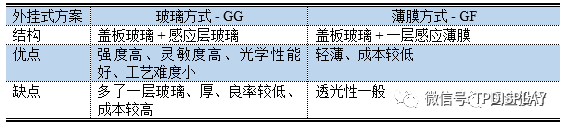 表1、玻璃方式與薄膜方式的對比
