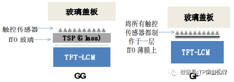 圖3:玻璃方式的外掛觸控技術(shù)GG(左)與薄膜方式的外掛觸控技術(shù)GF(右)
