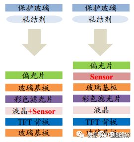 圖6:In-cell(左)和On-cell(右)內(nèi)嵌式觸控技術(shù)結(jié)構(gòu)示意圖