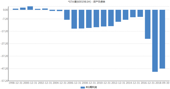 從最近一期財報的未分配利潤數(shù)字也可以看的很清楚,自上市第6年至今,每年未分配利潤一直是負(fù)值,也就是說,大唐電信上市第6年起的15年時間一直處于累計虧損狀態(tài)。
