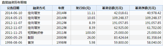 大唐電信歷年直接融資情況