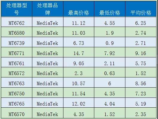 2018年11月聯(lián)發(fā)科TOP10處理器芯片價(jià)格表