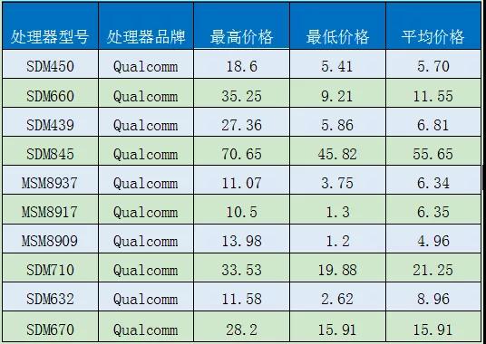 2018年11月高通TOP10處理器芯片價(jià)格表