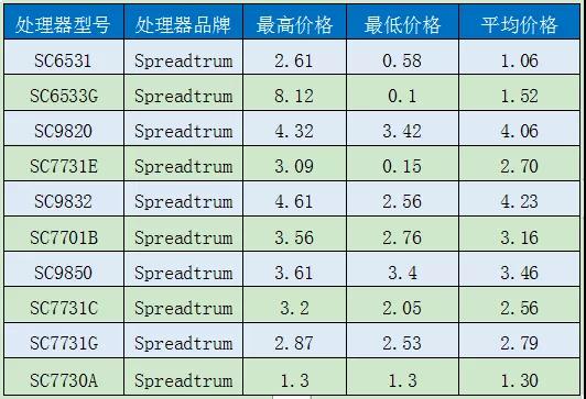 2018年11月展訊TOP10處理器芯片價(jià)格表