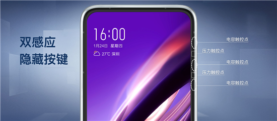另一亟待解決的問題是,尋找替代實(shí)體按鍵的解決方案。vivo創(chuàng)造性提出一種兼顧觸摸和壓力按壓優(yōu)勢的解決方案,即將電容按鍵和壓力按鍵相結(jié)合的“雙感應(yīng)隱藏按鍵”,在實(shí)現(xiàn)更精準(zhǔn)定位和靈敏觸控的同時(shí),終結(jié)手機(jī)實(shí)體按鍵,帶來“超級一體”的至簡外觀。