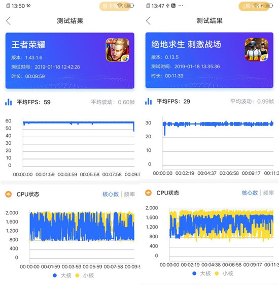 為了更準(zhǔn)確地分析后臺數(shù)據(jù),我們采用了游戲幀率測試軟件快否分別進(jìn)行檢測。根據(jù)最終結(jié)果來看,當(dāng)運行《王者榮耀》時,幀率可謂是非常穩(wěn)定,平均幀率保持在59幀,平均波動也僅為0.6幀;而面對運行條件更為苛刻的《刺激戰(zhàn)場》,Z3i標(biāo)準(zhǔn)版也交出了29幀的出色成績,0.99幀的平均波動甚至讓玩家看到了旗艦機(jī)的影子。由此不難看出,vivo Z3i標(biāo)準(zhǔn)版是有實力勝任主流大型游戲的。