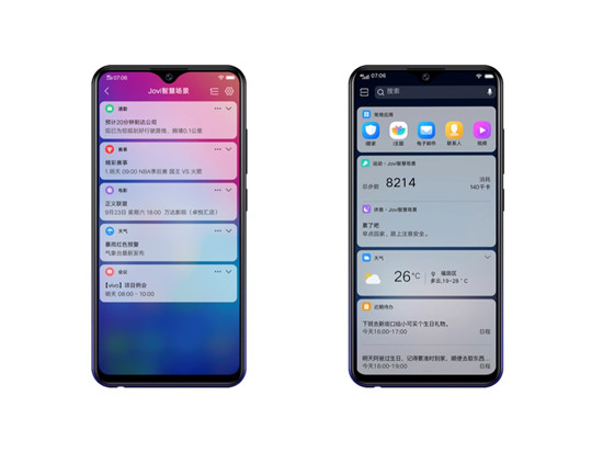 除卻拍照,vivo U1內(nèi)置的AI技術(shù)提供了出色的Jovi智慧功能:根據(jù)場景提供通勤、電影院、快遞功能的智慧場景,集合生活服務(wù)、新聞資訊的智慧桌面,從各個方面讓生活更智能。