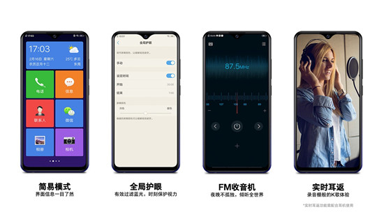 針對日常使用,vivo U1提供不少便捷新功能,例如有效保護視力的全局護眼功能,自由開啟自由調(diào)節(jié);方便使用廣播的FM收音機;手機K歌時,實時聽到自己聲音的實時耳返功能。貼心功能,大大提升日常使用手機的幸福感。