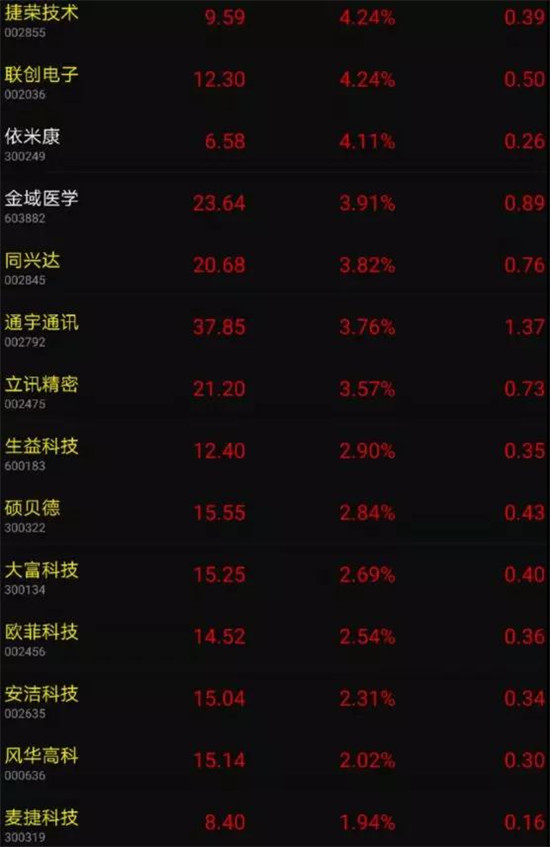 此外,包括信維通信、合力泰、華工科技、捷榮技術(shù)、聯(lián)創(chuàng)電子、同興達(dá)、立訊精密、生益科技、碩貝德、大富科技、歐菲科技、安潔科技、風(fēng)華高科、麥捷科技等也出現(xiàn)小幅度的上漲!