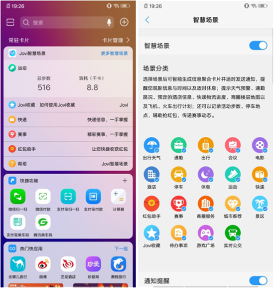 如今AI人工智能成為潮流,vivo U1順應(yīng)當(dāng)下這一主流趨勢,搭載Jovi智慧功能,通過多樣化智慧服務(wù)賦予用戶更便捷的日常使用體驗。例如及時提醒重要事項的Jovi智慧場景,囊括快遞、賽事等便捷功能。功能的集合,提高了整體的使用效率,讓工作與生活變得更為輕松。