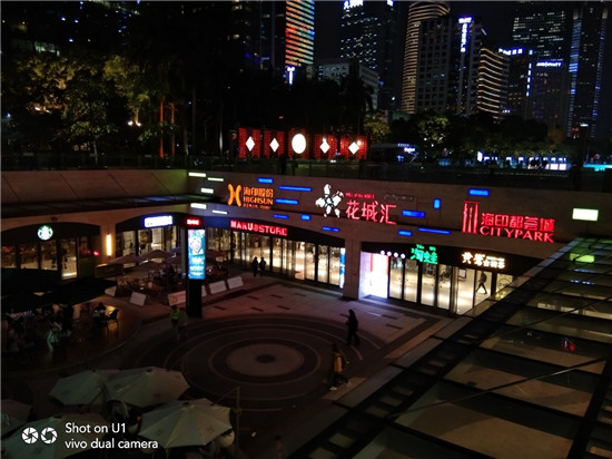 在光源復(fù)雜的環(huán)境中,vivo U1能夠保持對于炫光的良好控制,面對不同燈光在準(zhǔn)確還原色彩的同時(shí),依舊層次清晰、細(xì)節(jié)也沒有因?yàn)閺?fù)雜光源的干擾而失真,畫面豐富而均衡。總體來說,vivo U1的夜景成像能力處于同價(jià)位機(jī)型上游水平。