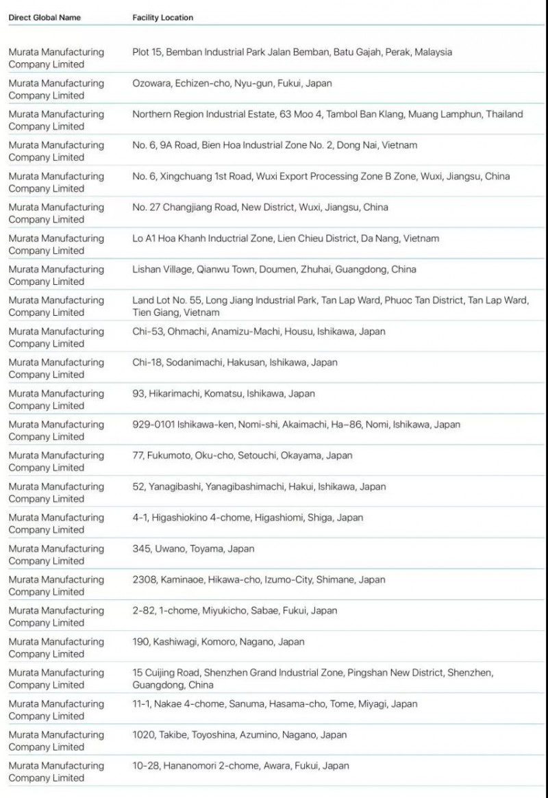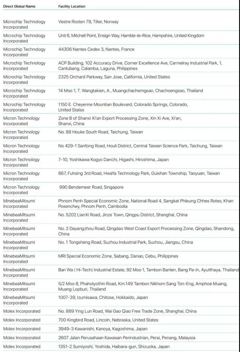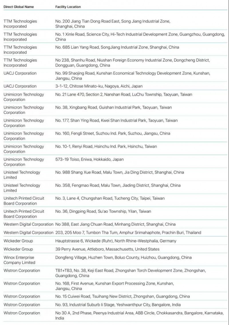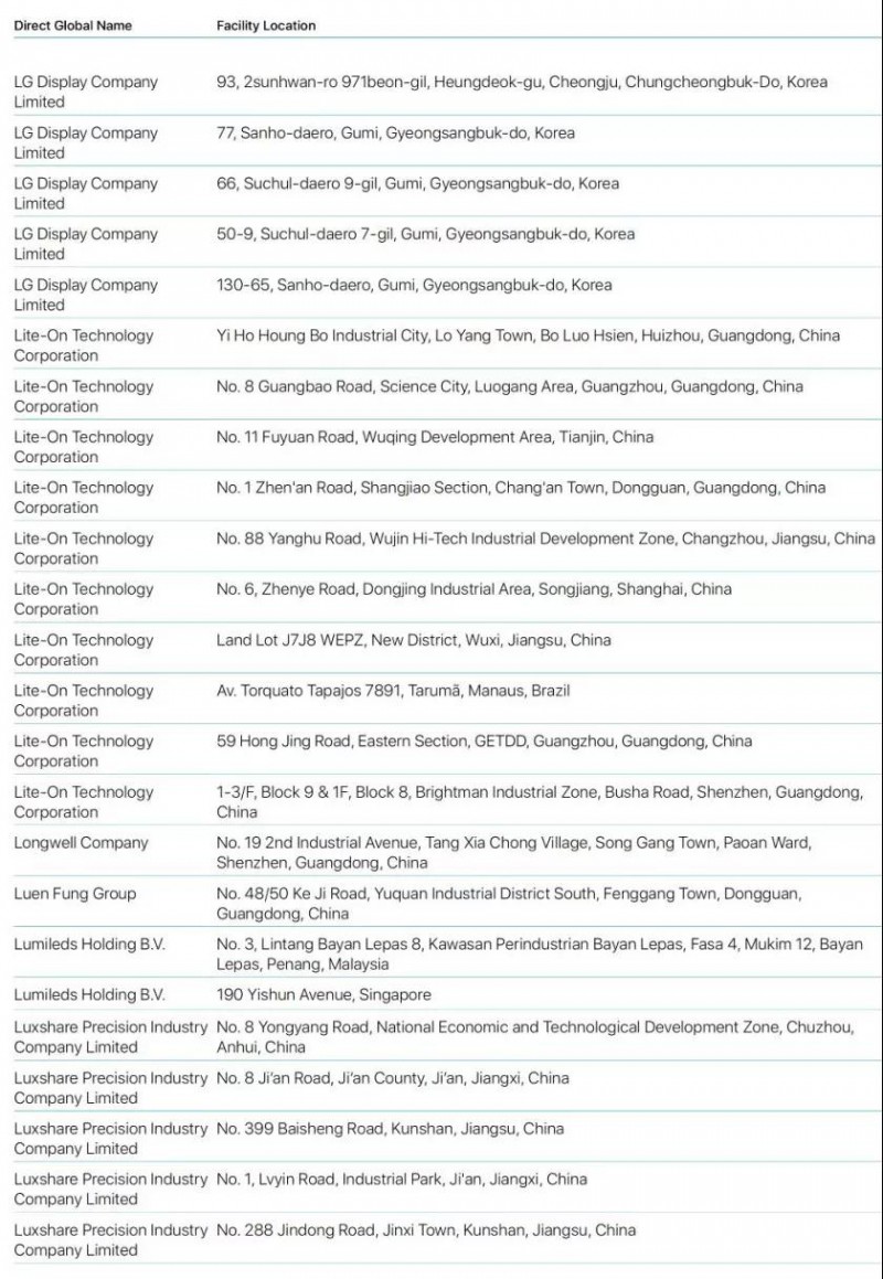Bumchun Precision Company Limited:韓國廠商,此前為蘋果提供音響模塊及其他組件。原部分年份沒有出現(xiàn)在名單中。
