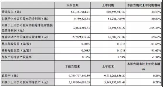 并且這種不利影響進(jìn)一步蔓延到了2019年第一季度,據(jù)其該季度報(bào)告顯示,其營(yíng)收為6.33億元,同比增長(zhǎng)24.53%,但是凈利潤(rùn)卻只有978萬元,與上年同期的5124萬元相比同比下降80.89%,此外,其扣非凈利則為虧損209萬!