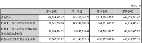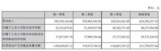 但細(xì)看新綸科技2018年的年報(bào)可以發(fā)現(xiàn),在前三季度中,新綸科技的業(yè)績(jī)?cè)鲩L(zhǎng)一直都很理想,數(shù)據(jù)顯示,2018年第一季度、二季度、三季度凈利潤(rùn)與2017年相比,分別同比增長(zhǎng)125.13%、105.62%、210.05%,由此可見,新綸科技2018年前三季度的業(yè)績(jī)非常好,但是,到了第四季度卻突然陷入虧損,該季度的凈利潤(rùn)為虧損493萬元!