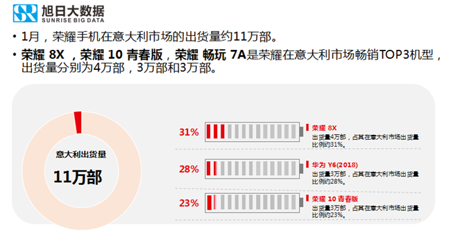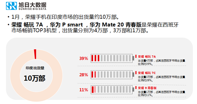 榮耀手機全球市場(chǎng)表現(2019年1月)