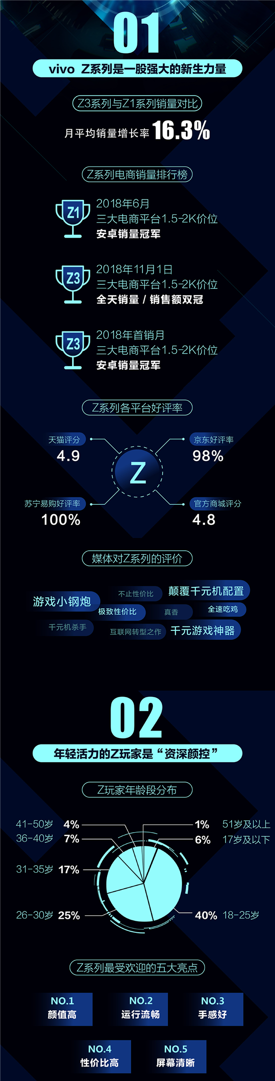 vivo的Z系列自推出以來(lái),憑借著(zhù)Z1和Z3的超強性能、高性?xún)r(jià)比和不錯的用戶(hù)口碑收到了年輕用戶(hù)的認可,95后占比高達50%。但時(shí)下年輕群體對于智能手機非常“挑剔”,“Z玩家用機圖鑒”顯示,Z玩家之所以選擇vivo Z系列,就是因為其運行流暢、顏值高、手感好、性?xún)r(jià)比高、屏幕清晰等優(yōu)良基因。