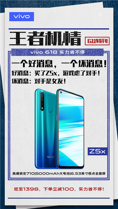 而作為vivo最新推出的重磅機(jī)型,性能實(shí)力派Z5x近日也可謂賺足了眼球。Z5x在斬獲各大主流電商平臺多項(xiàng)銷冠同時,其5000mAh超強(qiáng)電池續(xù)航能力以及出色的性能,受到眾多消費(fèi)者的喜愛和歡迎?;顒悠陂g,Z5x低至1398元,下單更能立減100元,實(shí)力詮釋省不停的優(yōu)惠狂歡。