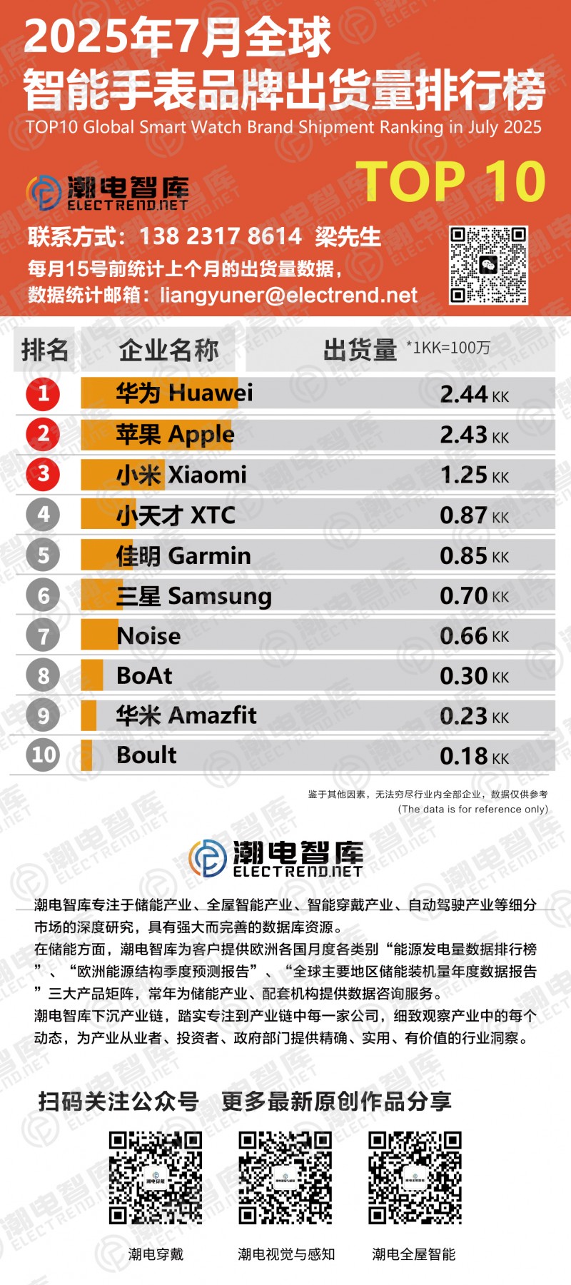 從2025年7月份智能手表品牌出貨量排行榜單可以看到,華為已經(jīng)以微弱優(yōu)勢超越蘋果奪得榜首,在今年6月華為全場景新品發(fā)布會上,首款“鴻蒙AI智能手表”正式迎來亮相,華為WATCH 5以端、軟、云協(xié)同的全新智慧架構(gòu)塑造全新華為穿戴設(shè)備體驗,堪稱史上最強最智慧的華為手表。