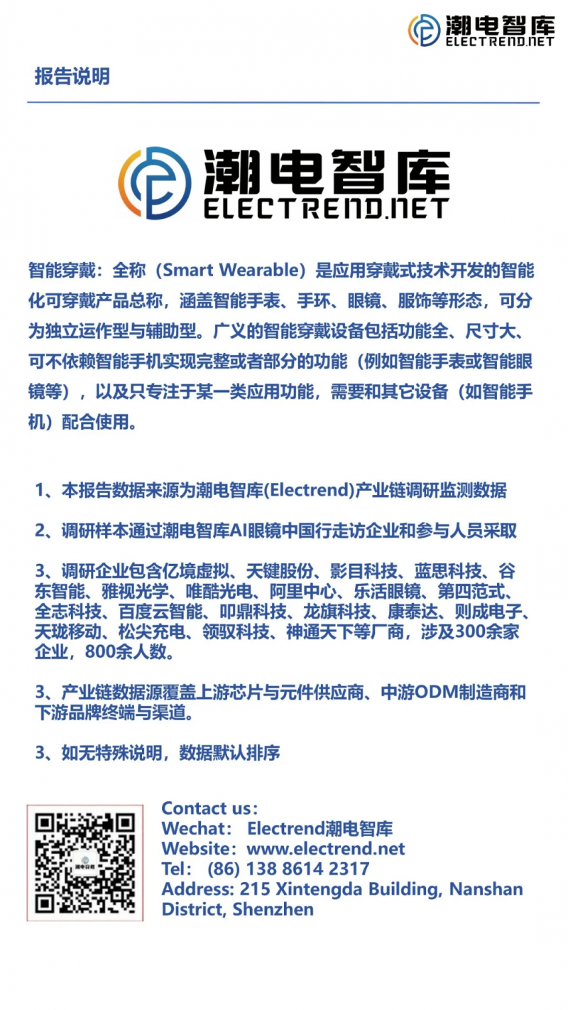 因篇幅問題,完整版本報告需在文章末尾處,進行掃碼填寫后獲取下載,歡迎關(guān)注潮電智庫,我們后續(xù)會針對智能穿戴供應(yīng)鏈,再度進行發(fā)布市場分析報告。