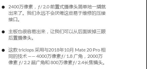 其它配置方面,Mate 20 X 5G配備了4200毫安時(shí)容量電池,支持40W快充,配備了三枚主攝像頭,分別為4000萬像素、2000萬像素和800萬像素,在機(jī)身正面則是2400萬像素的前置攝像頭。