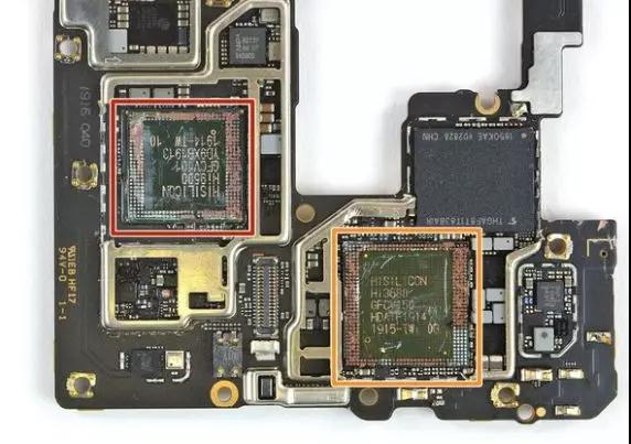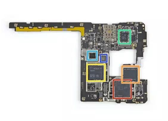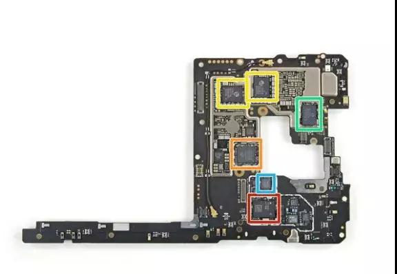 華為Mate 20 X 5G最重要的就是巴龍5000基帶芯片,iFixit將手機(jī)主板上的屏蔽罩揭開后并沒有發(fā)現(xiàn)這款芯片的蹤跡,反而看到兩個(gè)存儲(chǔ)芯片(實(shí)際上是麒麟980和巴龍5000芯片上堆疊封裝的)。