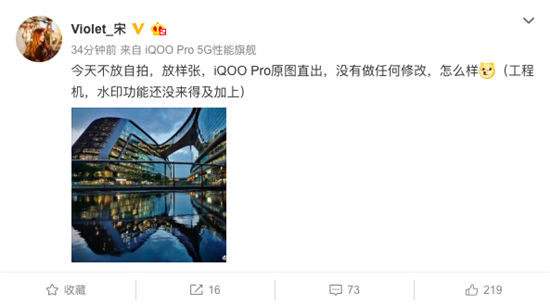 甚至,通過曝光的iQOO Pro樣張我們可以看到,整體水準(zhǔn)可與數(shù)碼相機(jī)的成像質(zhì)量看齊,這便是iQOO Pro基于iQOO家族拍照高水準(zhǔn)的再次突破。不僅如此,宋紫薇還表示,這是iQOO Pro機(jī)內(nèi)直出的原圖,并沒有經(jīng)過軟件修飾,目前可以看到的樣張就是iQOO Pro拍照真實(shí)水平的直接呈現(xiàn)。由此可見,iQOO Pro的拍照實(shí)力不容小覷。