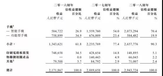 資料顯示,從禾苗發(fā)展歷史來(lái)看,2015財年,禾苗大部分收益來(lái)自銷(xiāo)售手機的印刷電路板組裝。為迎合客戶(hù)喜好并在禾苗深圳廠(chǎng)房正常運轉的前提下,禾苗自2016年起將業(yè)務(wù)重心轉移至供應手機作為其終端產(chǎn)品,而自2017年起,禾苗設計及開(kāi)發(fā)的大部分印刷電路板組裝大部分乃供作滿(mǎn)足完成手機訂單的內部需求。