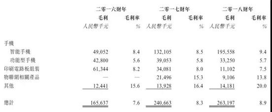 早在2019年4月,據手機報在線(xiàn)查詢(xún)得知,出貨量在旭日大數據排行中位列第十左右的禾苗,日前也在港股啟動(dòng)了IPO,其2018年手機出貨量2000萬(wàn)部出頭,其中智能機只有700多萬(wàn)部,毛利率為5.7%,而功能機近1300萬(wàn)部,毛利率為9.4%,綜合毛利率為8.9%。