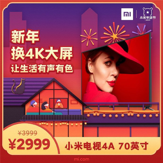 現在購置一臺大屏電視,成為許多人新年年貨的首選,小米電視超值特惠,總有一款是你想要的,小米電視4A 70英寸作為一款老人小孩都會(huì )用的人工智能語(yǔ)音電視,小米年貨節價(jià)格低至2999元,超值劃算,今年過(guò)年換大屏看春晚,可以安排上了!