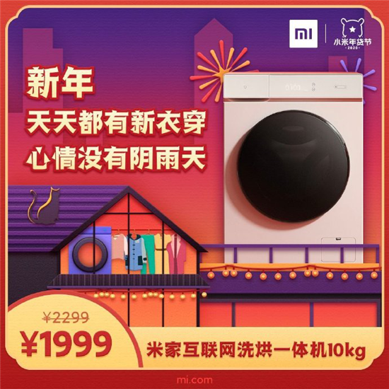 小米年貨節,多款家電鉅惠,驚喜好價(jià)值得買(mǎi),米家互聯(lián)網(wǎng)洗烘一體機10kg,國標最高A+級洗凈能力,洗得凈、烘得干,只要一臺就可以搞定全家衣物,年貨節到手價(jià)只要1999元。