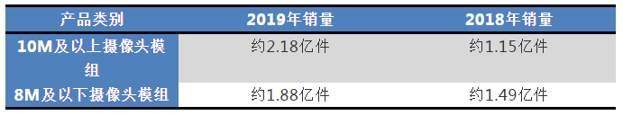 在攝像頭這一市場(chǎng),丘鈦科技2019年產(chǎn)品結(jié)構(gòu)有明顯改善。據(jù)統(tǒng)計(jì),2019年全年丘鈦科技10M及以上的攝像頭模組銷量約為2.18億件,同比增長(zhǎng)89.57%,超過其8M及以下攝像頭模組產(chǎn)品銷量。