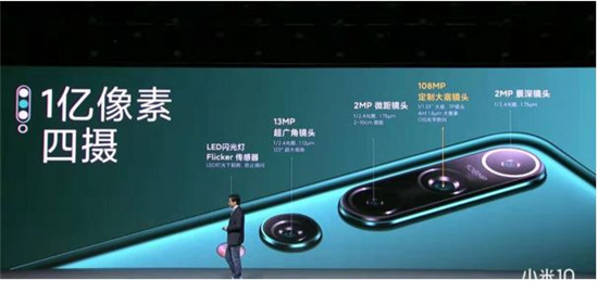 據了解,小米10前置采用了20M的攝像頭,后置采用了13M超廣角+200萬(wàn)微距+108M主攝+2M景深四攝。