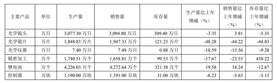 不過從產銷情況上看,2019年鳳凰光學的光學鏡頭生產量較上年卻有所下滑,而庫存較上年有所減少。