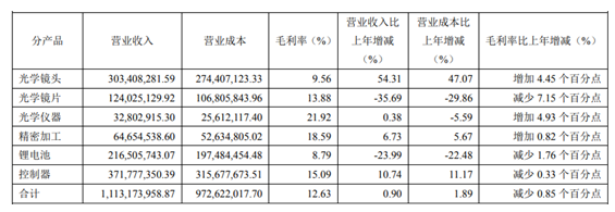 而在光學鏡頭毛利率上,2019年鳳凰光學的光學鏡頭毛利率約為9.56%,較上年增加4.45個百分點。