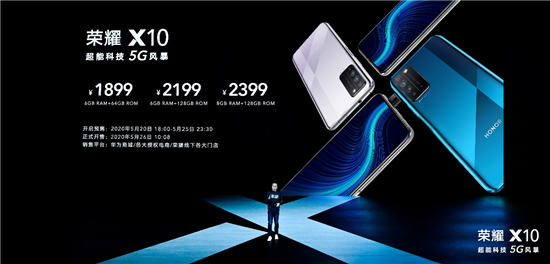 榮耀X10首發(fā)價格為6GB+64GB版本1899元,6GB+128GB版本2199元,8GB+128GB版本2399元,并有競速藍、探速黑、光速銀、燃力橙四種配色供選。目前已經(jīng)啟動預約,5月26日將在華為商城、各大授權電商平臺、榮耀線下各大門店正式開售。