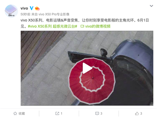2020年5月21日,vivo官方微博繼續(xù)發(fā)布消息為即將于6月1日正式發(fā)布的X50系列旗艦級影像手機(jī)X50系列造勢。視頻顯示,X50系列搭載的微云臺防抖技術(shù)在各個場景的應(yīng)用當(dāng)中,防抖效果表現(xiàn)非常出色,即便是較為激烈的運(yùn)動場景,微云臺防抖技術(shù)依然可以保持畫面的穩(wěn)定、清晰、流暢。