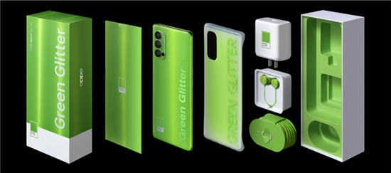 ?。∣PPO Reno4 Pro–Green Glitter仲夏熒光,由Pantone認(rèn)證的Reno專屬夏日色)