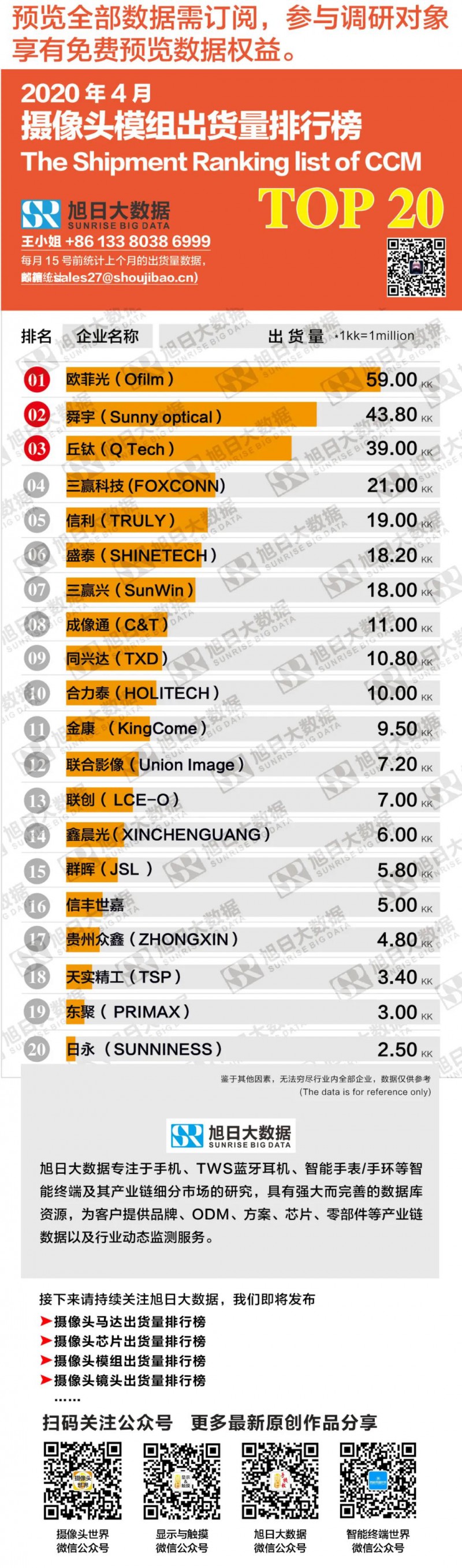 接下來(lái)我們也會(huì )陸續發(fā)布4、5月份的攝像頭模組、鏡頭、芯片、馬達出貨量排行榜,歡迎溝通。