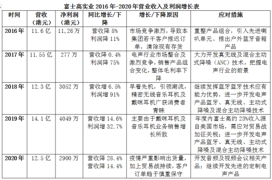 其中,作為富士高主要收入來源的戴咪耳機及音響耳機營業(yè)收入9.1億港元,同比下降15.7%,占總營業(yè)收入73.1%,是直接拉低富士高年度營業(yè)收入的最主要原因。