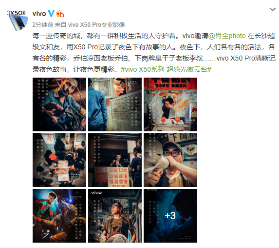 今天,vivo官微發(fā)布了一組由vivo X50 Pro在長(zhǎng)沙超級(jí)文和友拍攝的夜景人像大片,照片由著名攝影大師肖全掌鏡,畫(huà)面細(xì)節(jié)清晰,人物神態(tài)豐富,故事感強(qiáng)烈。夜色下,人們各有各的活法,各有各的精彩,而肖全正好用擁有超感光微云臺(tái)的vivo X50 Pro清晰地記錄下了他們的故事。