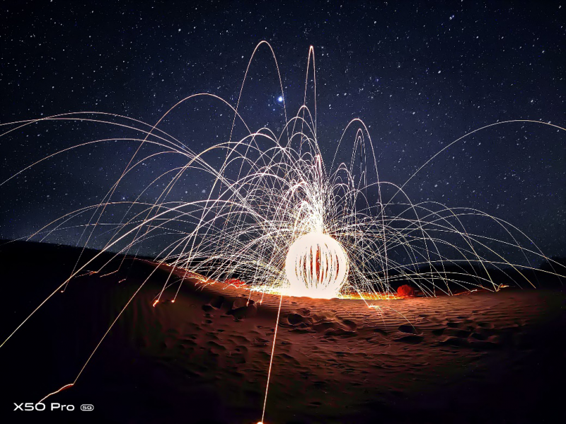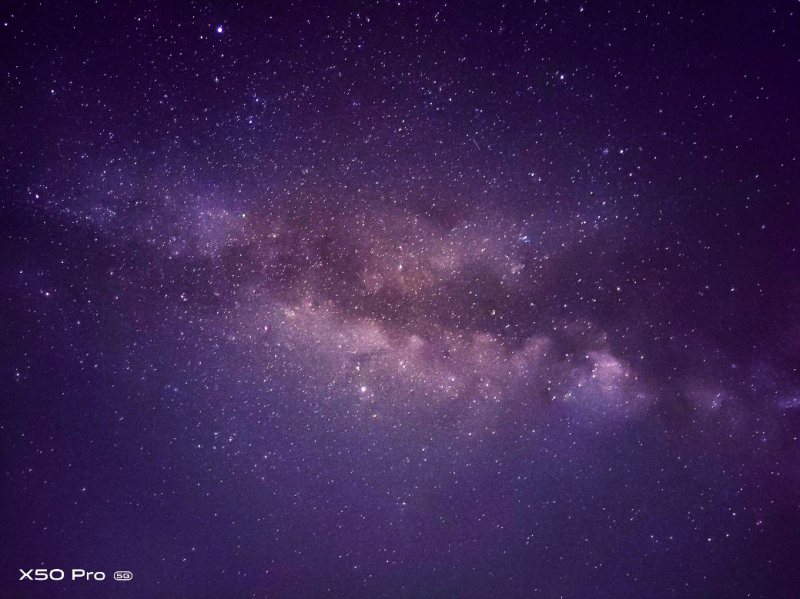 不單夜景人像,X50 Pro還搭載了星空拍攝模式?;谔炜辗指顚?duì)齊技術(shù),將星空與地景分割處理,利用對(duì)齊算法將多幀星空畫(huà)面對(duì)齊,解決長(zhǎng)曝光期間地球自轉(zhuǎn)帶來(lái)的星星位移。即便是攝影小白,也可以獲得專業(yè)影像器材的星空拍攝效果。