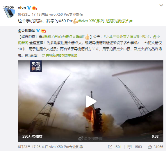 助力中國航天,vivo X50 Pro記錄火箭點火升空瞬間